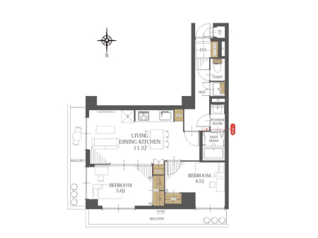 | 間取り | 2K (LDK4.5/洋室6) | ||||