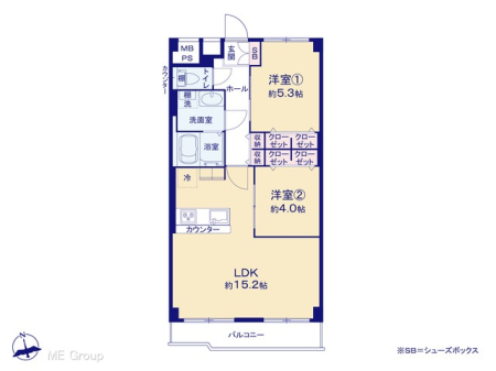 間取り | 2LDK (洋室6.3/洋室6.2/LDK16.4) |
