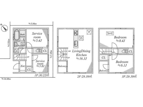 採光面 | - | 構造/階数 | 木造/地上3階建 |