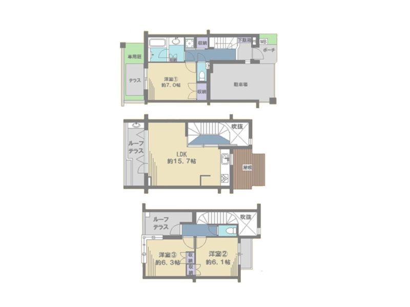 間取り | 3LDK (洋室7/LDK15.7/洋室6.1/洋室6.3) |