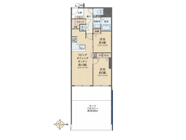 管理費等 | 28,960円 | 修繕積立金 | 13,510円 | 所在階/階数 | 5階/地上10階建 | バルコニー面積 | 30.5m² |