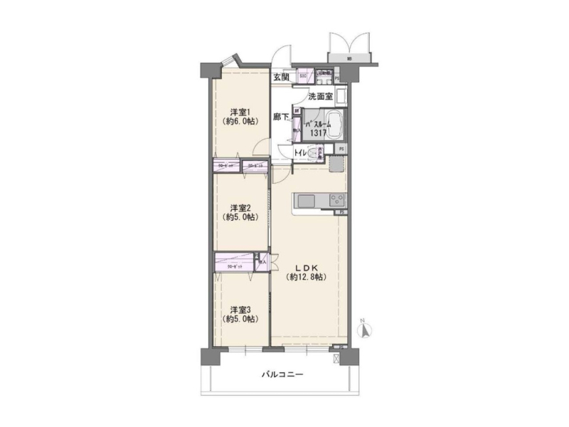 間取り | 3LDK (LDK12.8/洋室5/洋室5/洋室) |