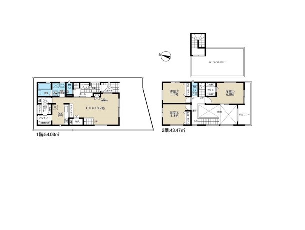 | 築年月 | 2021年11月築 | 間取り | 3LDK (LDK18.2/洋室6.8/洋室5.3) | ||