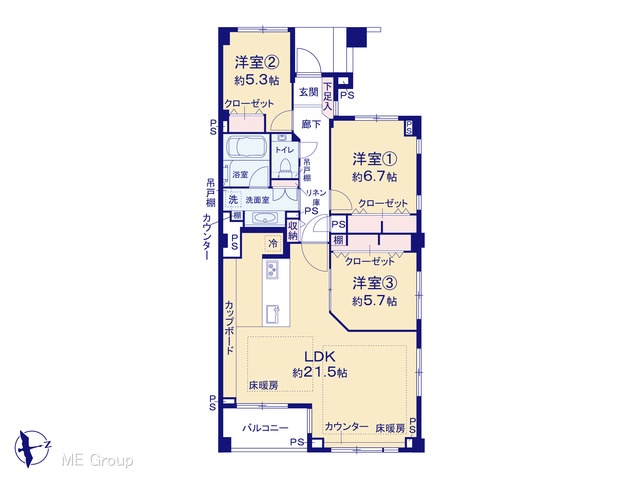 | 間取り | 3LDK (-) | ||||