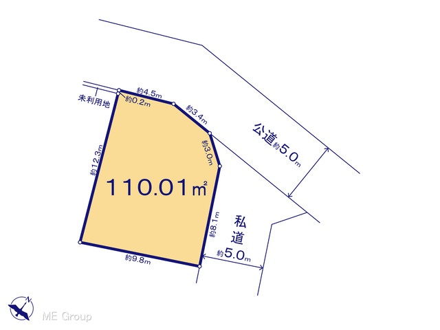 | 現況/引渡し | 更地/2026年5月下旬 | 接道状況 | 接道: 北西 公道 道路幅: 5m 接道: 北東 私道 道路幅: 5m |