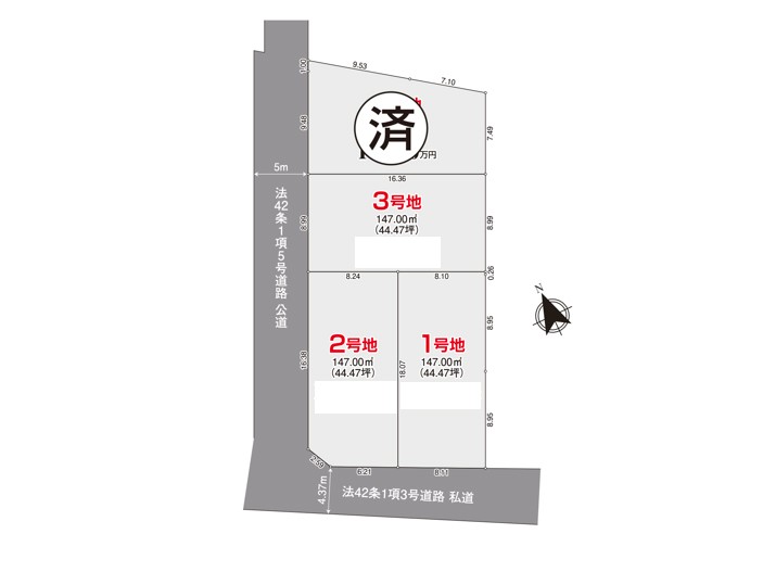 土地面積 | 147m² (44.47坪) | 坪単価 | 235.9万円 /坪 |