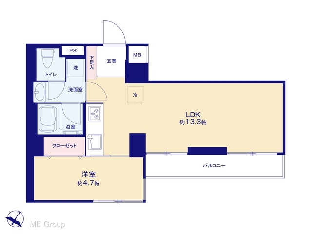 間取り 1LDK (-)