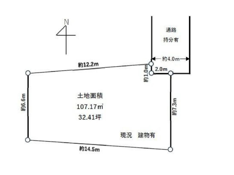 | 現況/引渡し | 古屋あり/相談 | 接道状況 | 接道: 北 2m 私道 道路幅: 4m |
