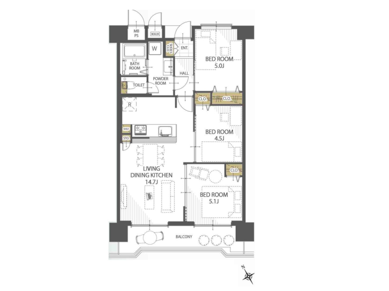 | 間取り | 3LDK (洋室5.1/洋室5/洋室4.5/LDK14.7) | ||||