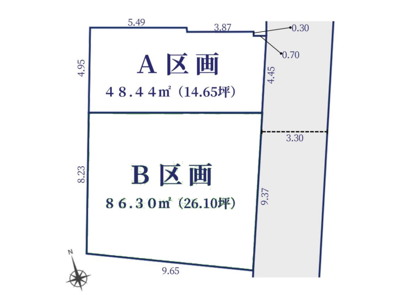 | 現況/引渡し | 更地/相談 | 接道状況 | 接道: 東南 公道 道路幅: 3.3m |