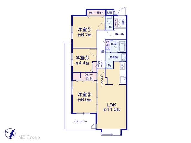 | 間取り | 3LDK (-) | ||||