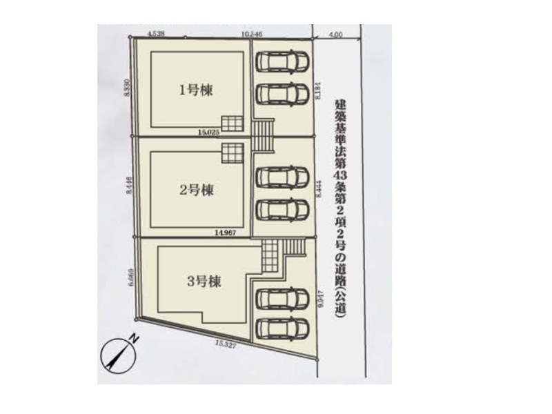 | セールスコメント | 第1種高度地区 法第22条区域 道路斜線制限有 北側斜線制限 日影規制:3h-2h/1.5m 高さ制限10m 法43条2項2号通路(北東側4m公道) 43条2項第2号許可済み不適合接道有 |