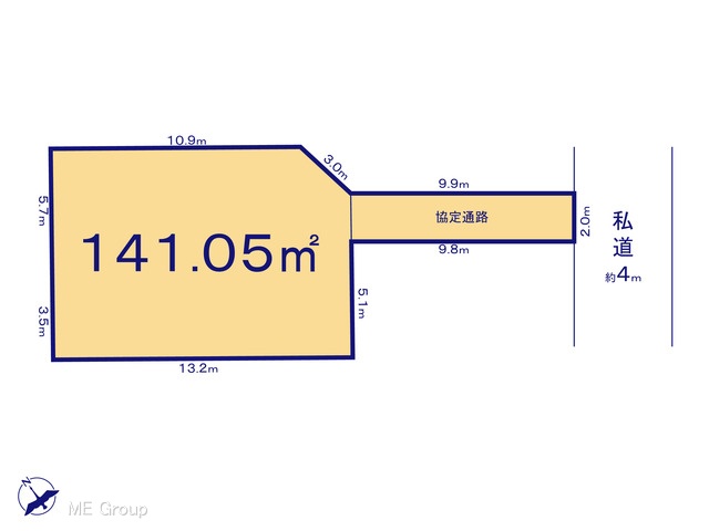 | 現況/引渡し | 更地/即時 | 接道状況 | 接道: 東南 私道 道路幅: 4m |