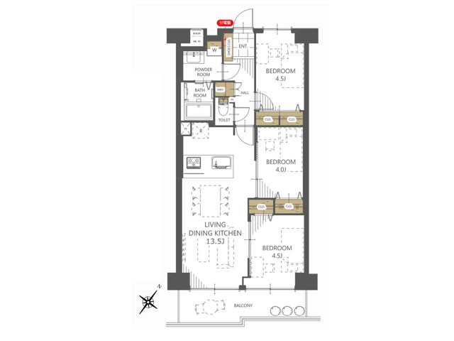 | 間取り | 3LDK (洋室4.5/洋室4/LDK13.5) | ||||