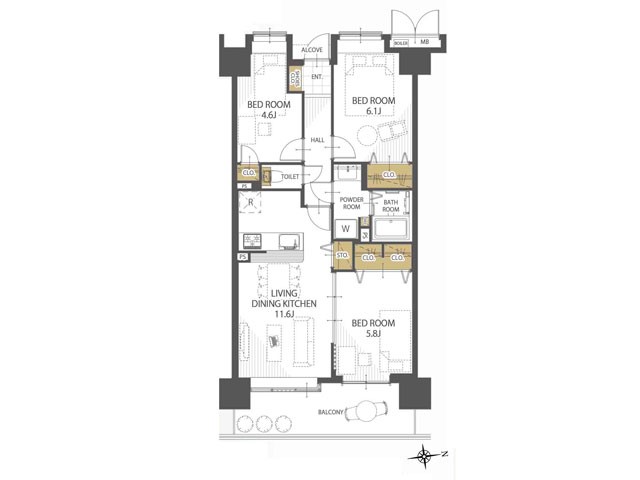 | 間取り | 3LDK (洋室6.1/洋室5.8/洋室4.6/LDK11.6) | ||||