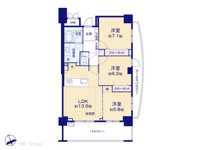 | 間取り | 3LDK (-) | ||||
