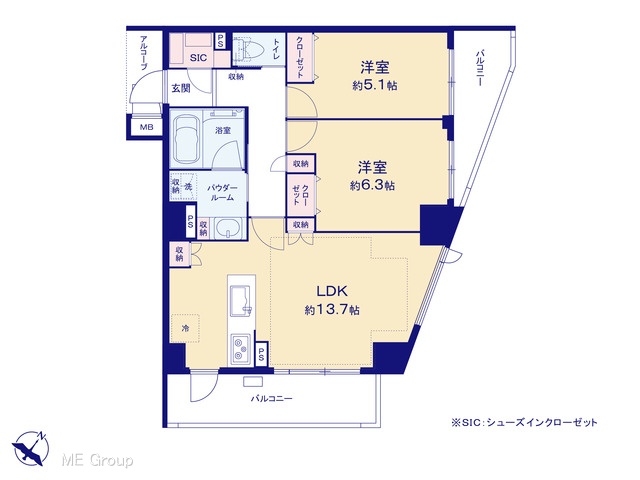 間取り 2LDK (-)