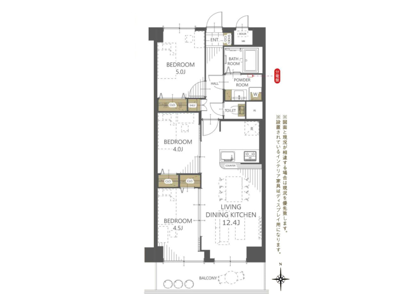 間取り 3LDK (洋室5/洋室4.5/洋室4/LDK12.4)