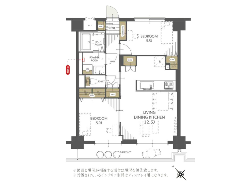 間取り 2LDK (洋室5.5/洋室5/LDK12.5)