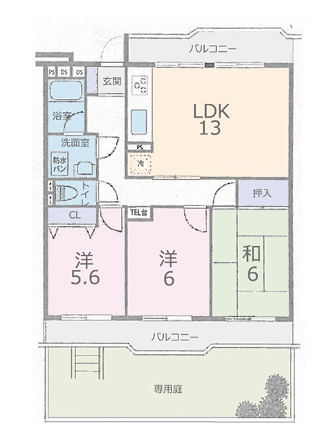 | 間取り | 3LDK (和室/洋室/洋室) | ||||