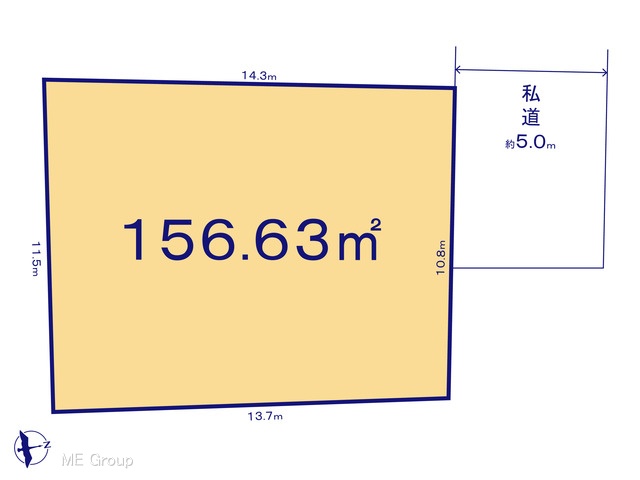 土地面積 156.63m² (47.38坪) 坪単価 38.62万円 /坪