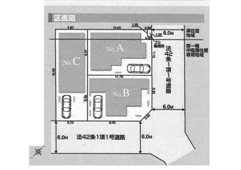 | 接道状況 | 接道: 北東 公道 道路幅: 6m 接道: 東南 公道 道路幅: 6m |
