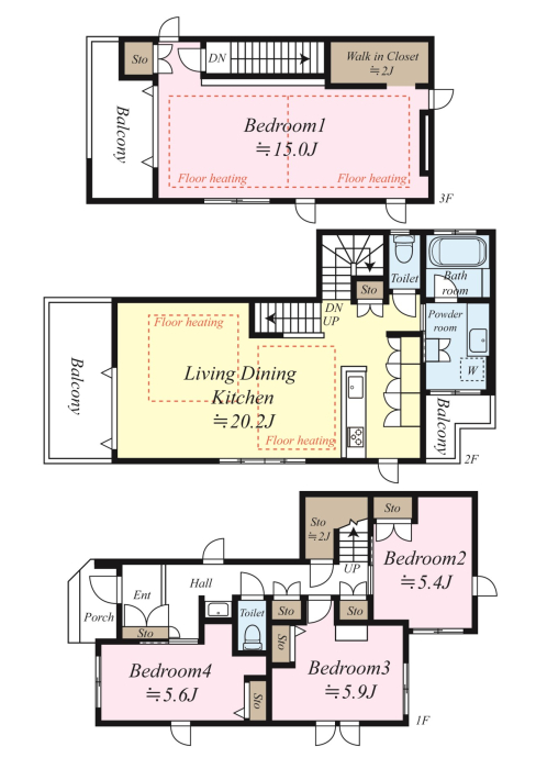 | 築年月 | 2018年8月築 | 間取り | 4LDK (LDK20.2/洋室15/洋室5.6/洋室5.9/洋室5.4) | ||